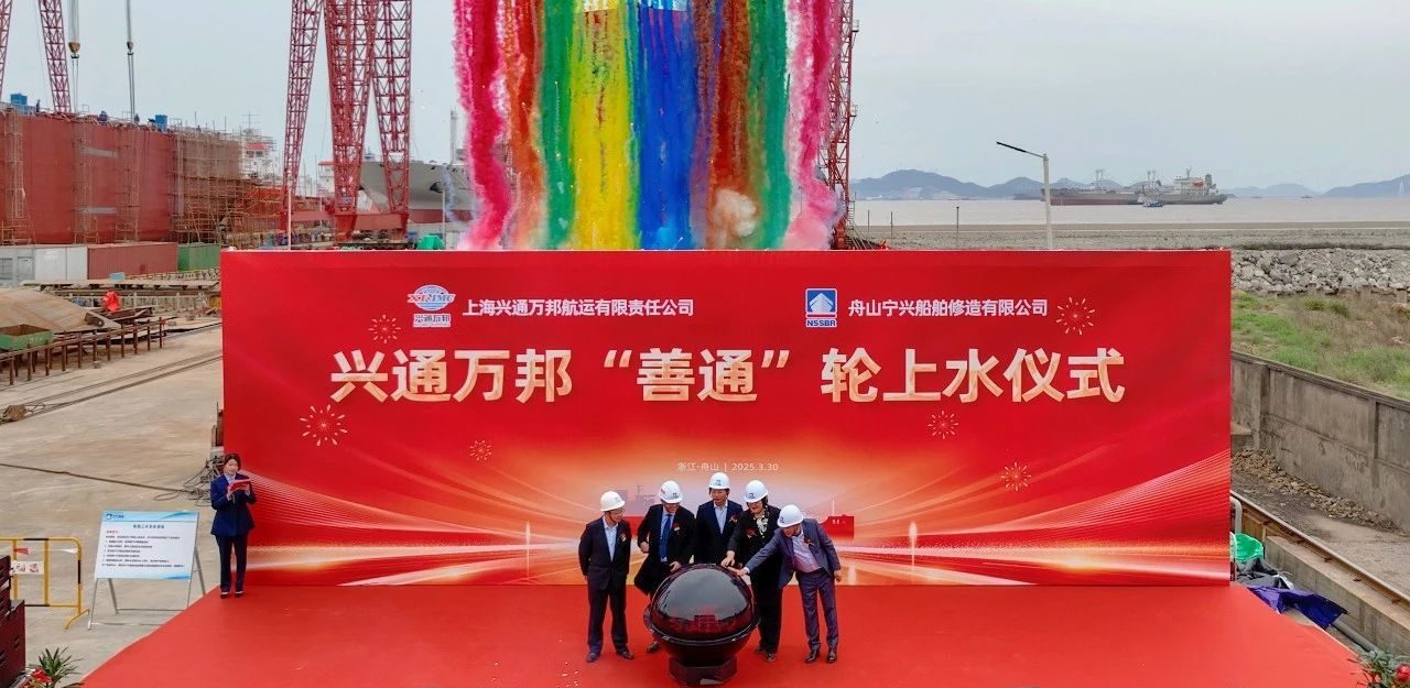 3月30日,由舟山寧興船舶修造有限公司為上海興通萬邦航運有限責任公司傾力打造的13000DWT雙相不銹鋼化學品船“善通”輪在舟山寧興船舶化學品船建造基地隆重舉行下水儀式。